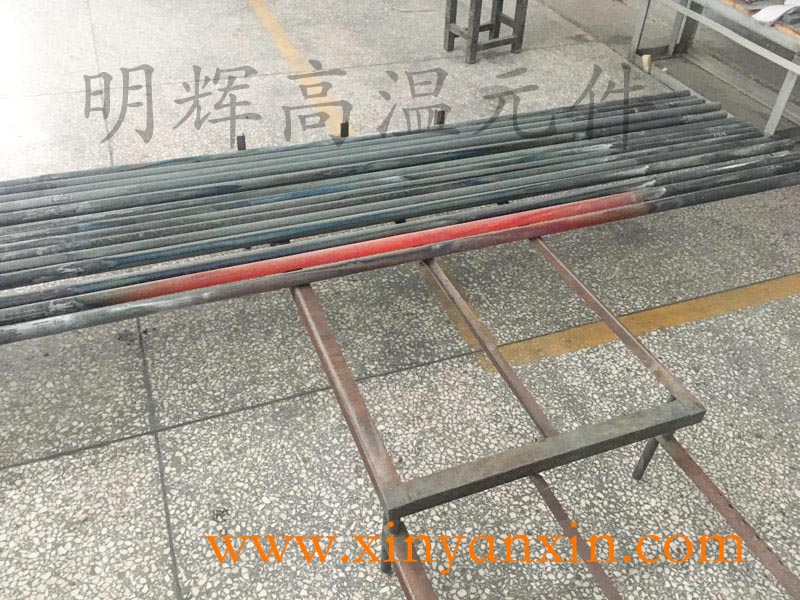 (10)嚴禁硅碳棒超負荷使用。如棒因故斷裂或發(fā)現棒發(fā)熱不均,局部呈白熾或暗紅現象一段一段時(shí),這說(shuō)明棒體老化不一致,一段段電阻相差太大,應停爐檢修換棒。